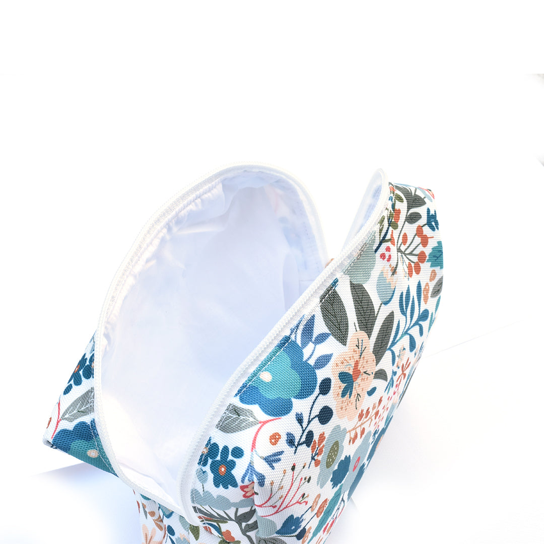 Bring organization and floral charm together with this large fabric floral box pouch, the perfect accessory for everyday use and travel.